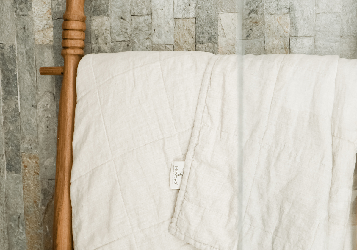No feathers are used inside our quilted bed cover as down-stuffing retains too much heat in warm weather leading to night sweats! The combination of linen and organic cotton makes this bed cover incredibly lightweight and breathable - perfect for Indonesia's weather. Aside from keeping you dry and comfortable, it wicks away moisture from perspiration, ensuring no breeding ground forms for dust mites and mould.