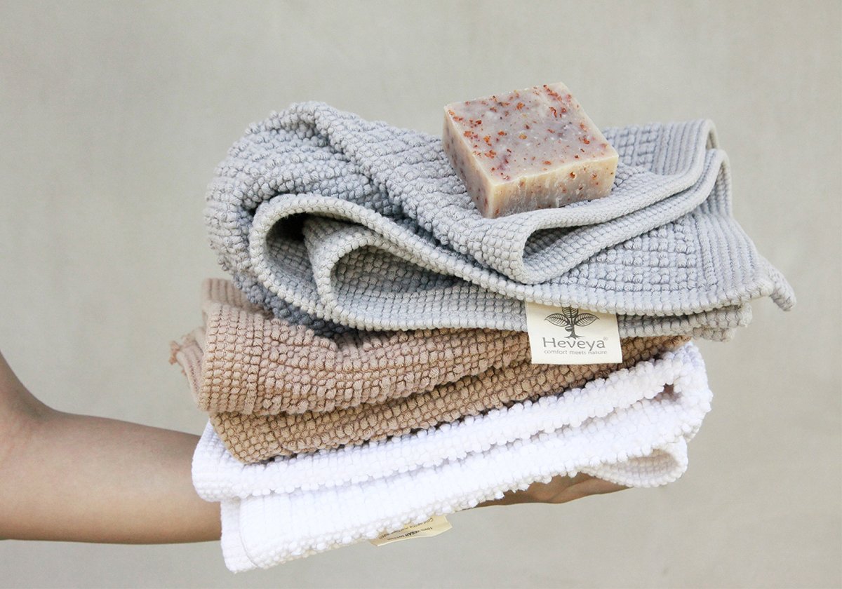 During the production and manufacturing process of conventional bathroom accessories in the textile industry, the use of animal by-products is not uncommon. Our aim at Heveya® was to develop 100% plant-based bath essentials that would be the perfect addition to our sustainable-yet-luxurious product range - ultimately delivering both comfort and functionality!